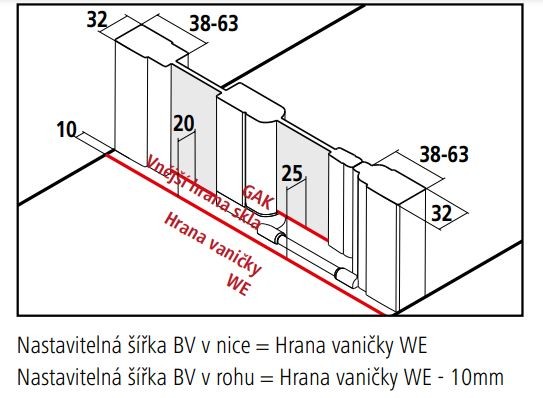 - Nastaviteľná šírka v každom stenovom profile 25 mm.
