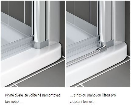- Možno inštalovať s prahovou lištou (výška 6 mm), alebo bez prahovej lišty (bezbariérovej), viď strana 92-93.