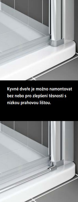 Sprchové kúty Kermi sú určené na montáž na vaničku. Pri inom spôsobe inštalácie je potrebné zabezpečiť porovnateľné inštalačné podmienky (utesnenie napojenie na dlažbu, spád, ...).