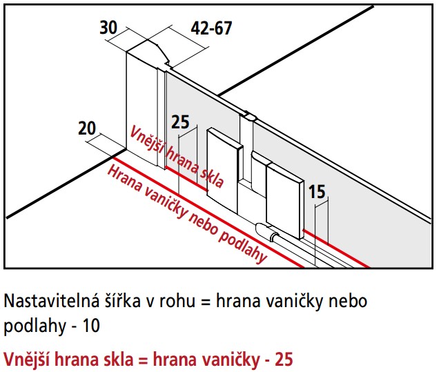 - Nastaviteľná šírka vo stenovom profile 25 mm.