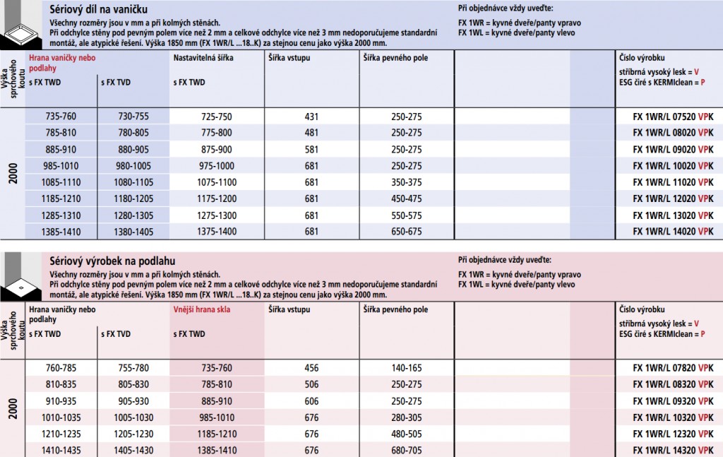 | Inštalácia | pro kombinaci s FX TWD boční stěnou / FX TVD zkrácenou boční stěnou vedle vany, boční stěna vždy na straně dovírání |