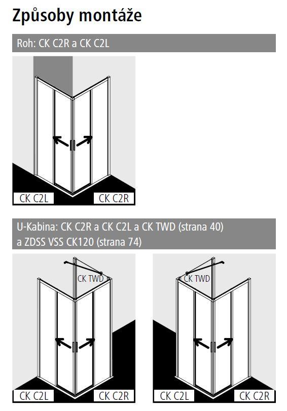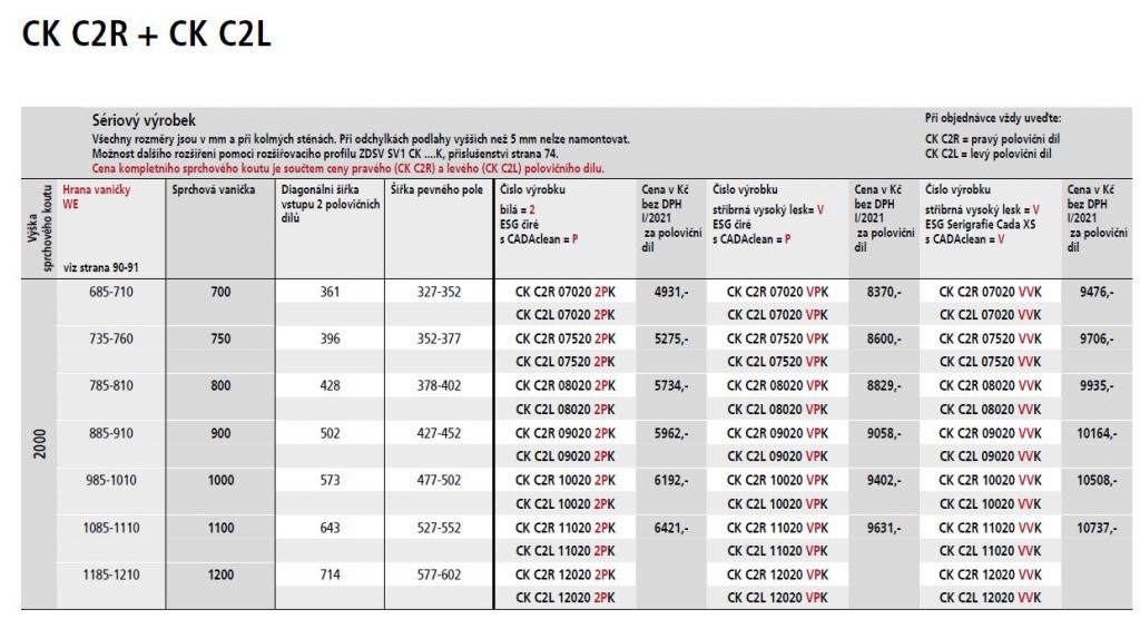 - Cena kompletného sprchového kúta je súčtom ceny pravého polovičného dielu CK C2R a ľavého polovičného dielu CK C2L .