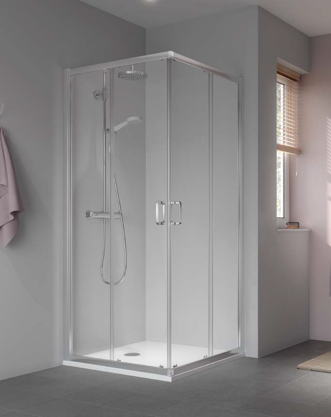 Kermi STINA sprchový kút rohový ED4 1000 x 1950 mm sklo číre Clean STED410019VPK Kompletné rohový vstup. - Čiastočne rámový rohový vstup s dvomi posuvnými krídlami a dvoma pevnými poľami. - Bezpečnostné sklo pevného poľa 4 mm, dverného krídla 5mm po… (celý popis)