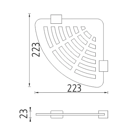 NIMCO Kibo ixi Rohová polica IXI chróm Ki X211-26 Rohová polica s frézovaním. Materiál Plexiglass. 210x210 mm