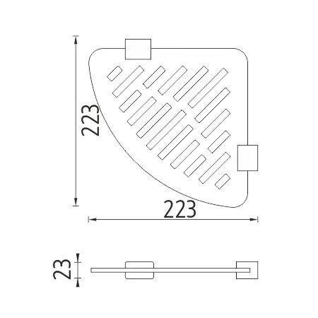 NIMCO Kibo ixi Rohová polica IXI chróm Ki X212-26 Rohová polica s frézovaním. Materiál Plexiglass. 210x210 mm