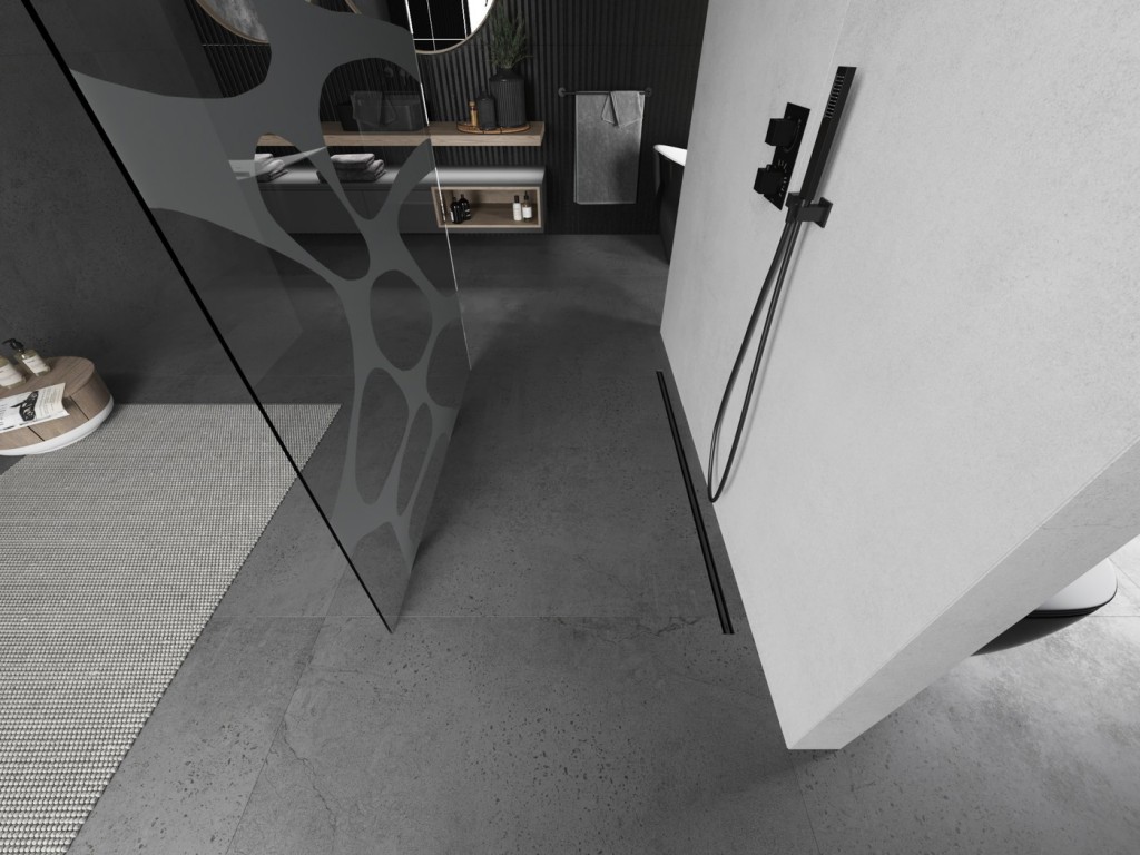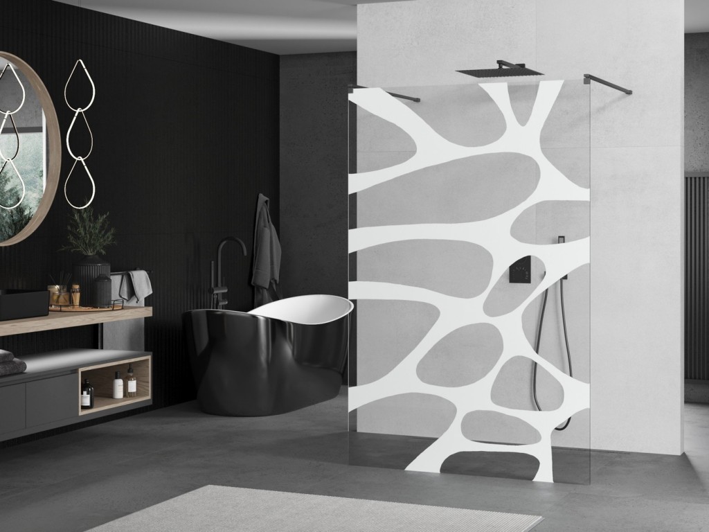 Walk-in sprchová zástena KIOTO 100 x 200 cm, 8 mm - číre sklo s bielym dekorom, grafit metal vzpery