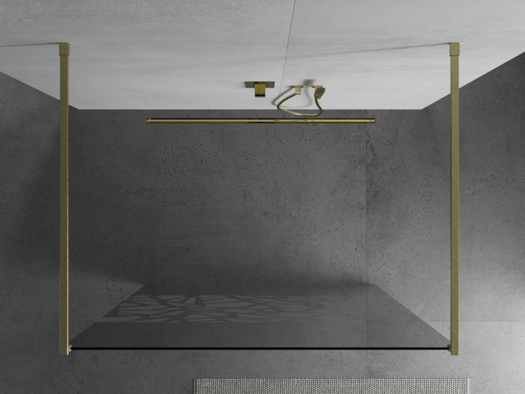 Walk-in sprchová zástena KIOTO 100 x 200 cm, 8 mm - číre sklo s bielym dekorom, kefovo zlaté vzpery