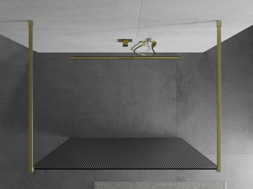 Walk-in sprchová zástena KIOTO 100 x 200 cm, 8 mm - číre sklo s pruhmi, kefovo zlaté vzpery