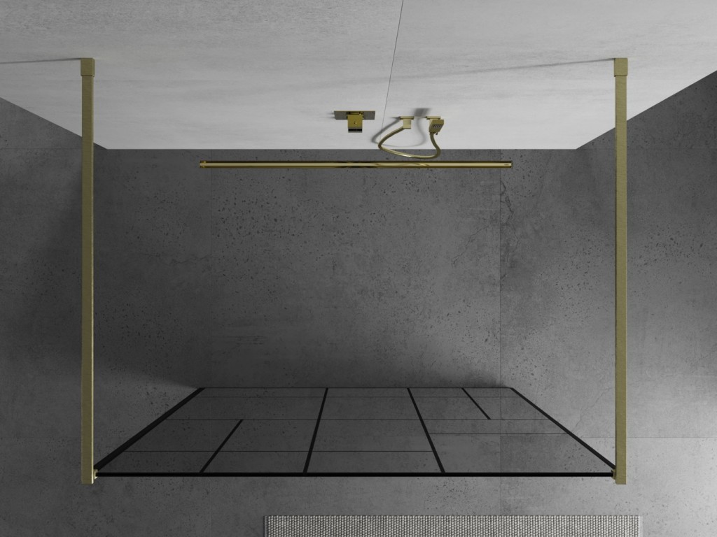 Walk-in sprchová zástena KIOTO 110 x 200 cm, 8 mm - číre sklo s čiernym vzorom, kefovo zlaté vzpery