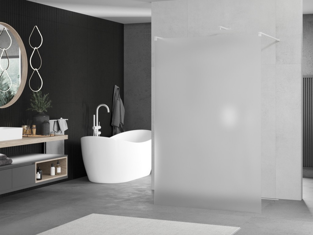 Walk-in sprchová zástena KIOTO 110 x 200 cm, 8 mm - matné sklo, biele vzpery