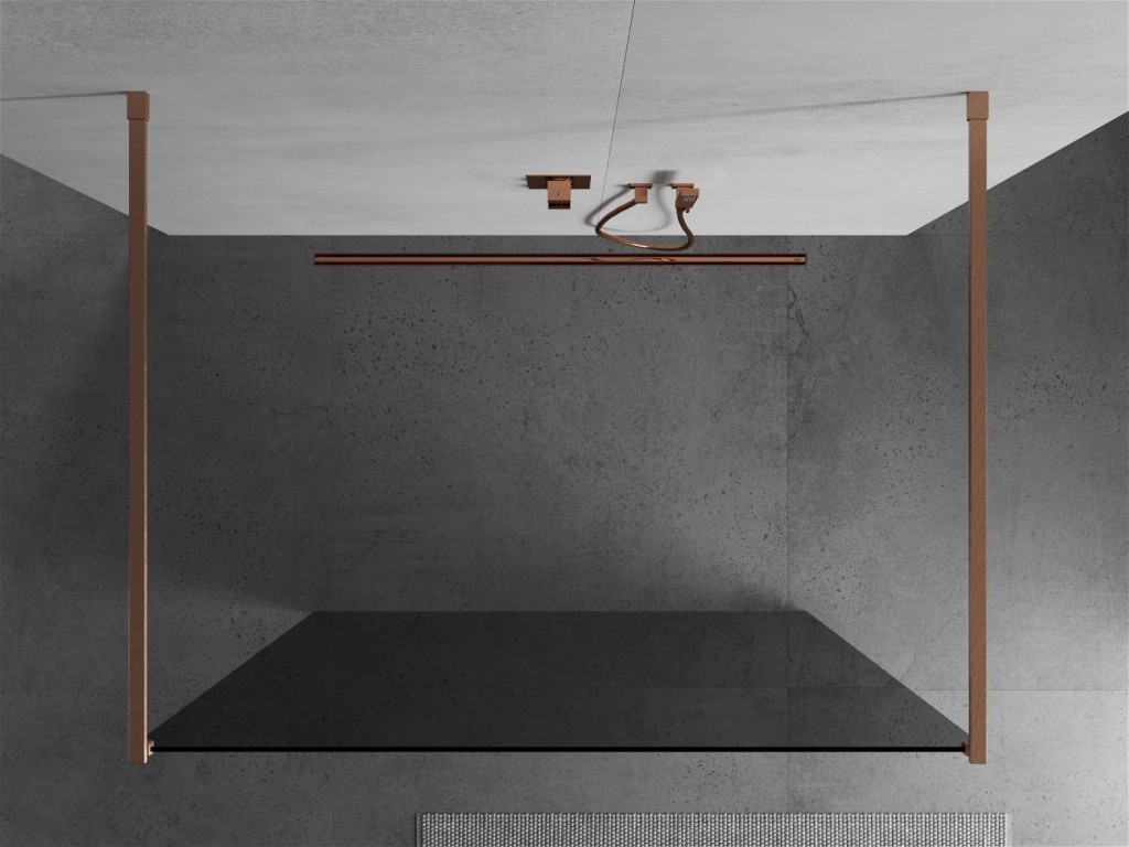 Walk-in sprchová zástena KIOTO 110 x 200 cm, 8 mm - grafit sklo, kefovo medené vzpery