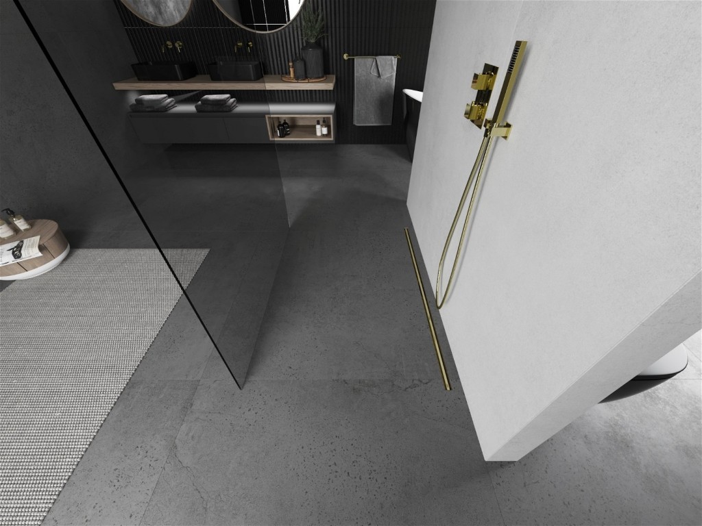 Walk-in sprchová zástena KIOTO 110 x 200 cm, 8 mm - číre sklo, kefovo zlaté vzpery