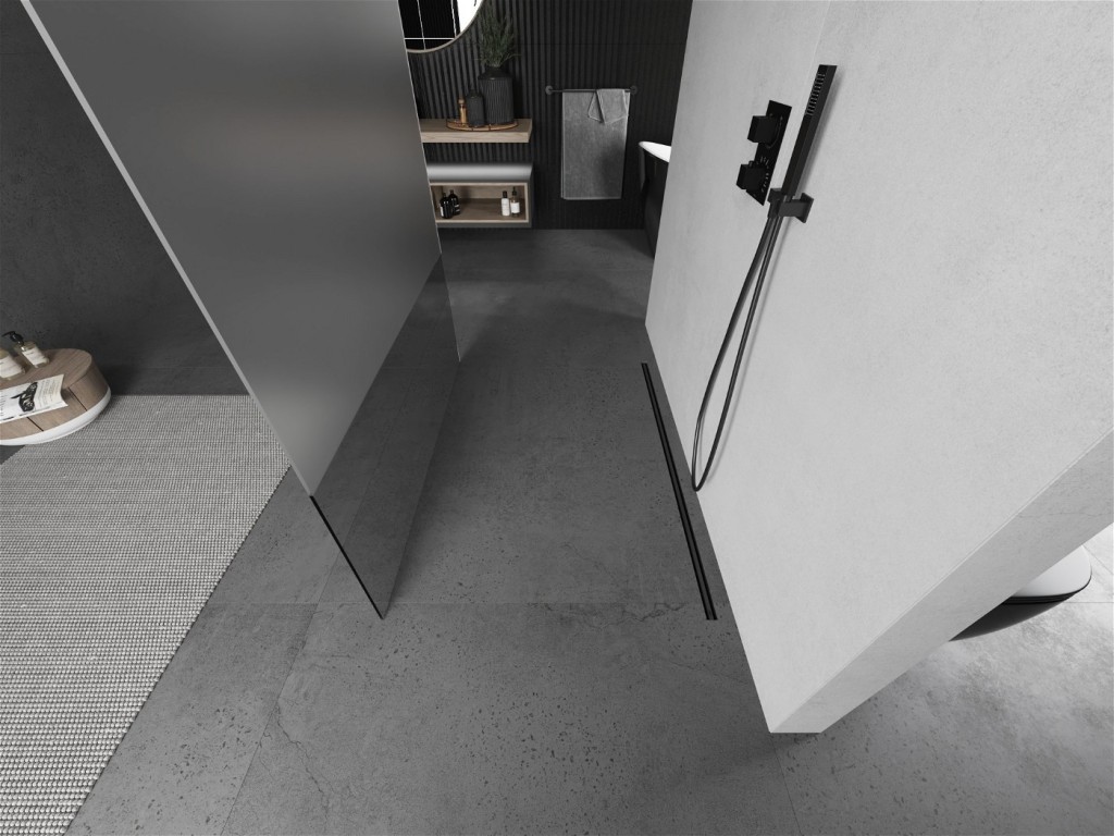 Walk-in sprchová zástena KIOTO 110 x 200 cm, 8 mm - číre/matné sklo, kefovo grafit vzpery