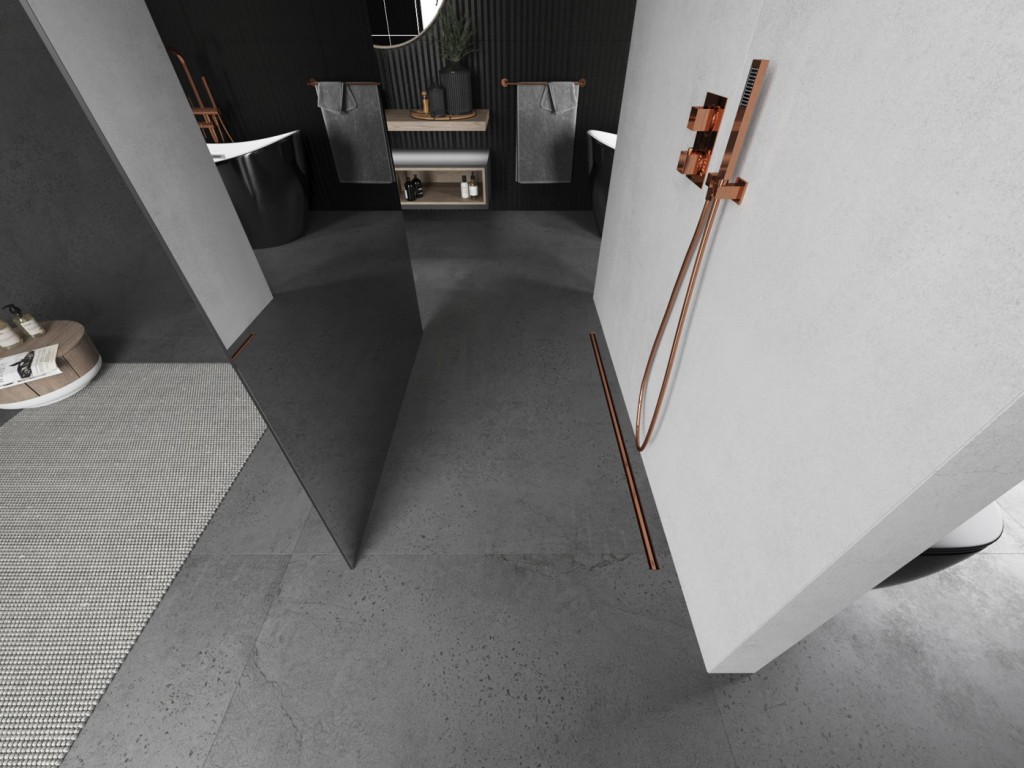 Walk-in sprchová zástena KIOTO 120 x 200 cm, 8 mm - zrkadlové sklo, kefovo medené vzpery
