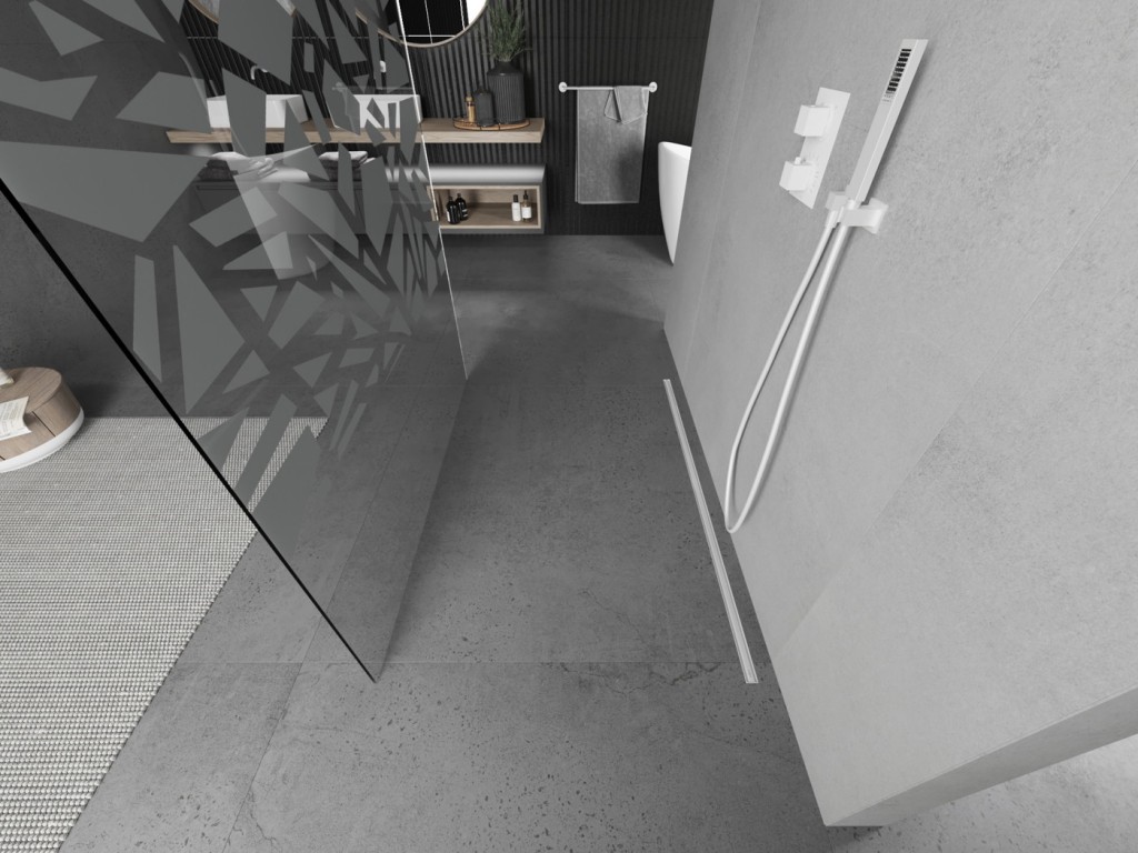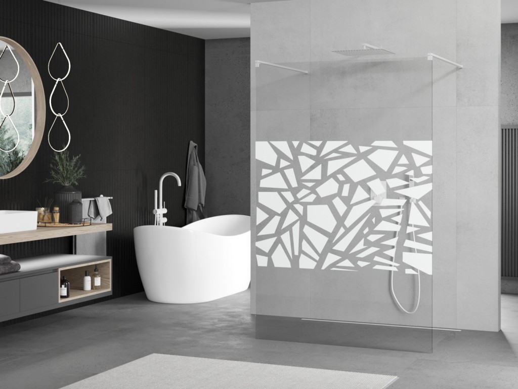 Walk-in sprchová zástena KIOTO 120 x 200 cm, 8 mm - číre sklo s bielym dekorom, biele vzpery