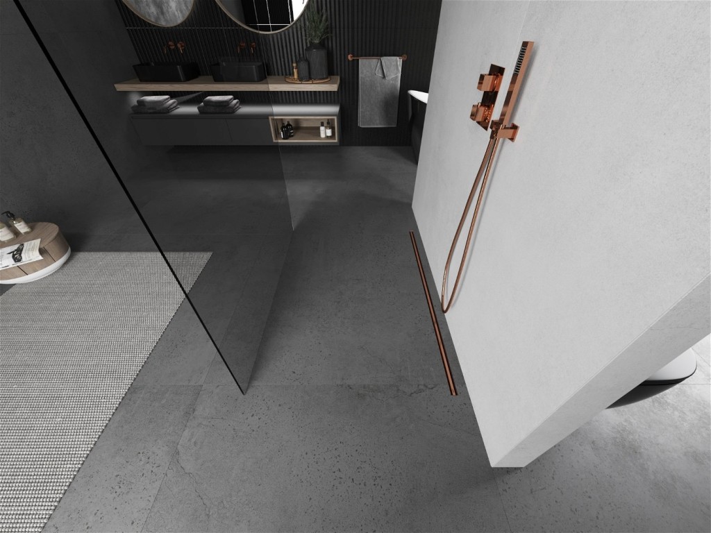 Walk-in sprchová zástena KIOTO 130 x 200 cm, 8 mm - číre sklo, kefovo medené vzpery