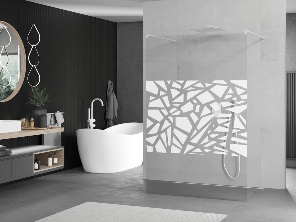 Walk-in sprchová zástena KIOTO 130 x 200 cm, 8 mm - číre sklo s bielym dekorom, biele vzpery