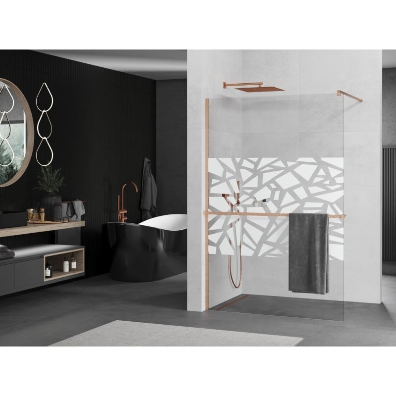 Elegantný sprchové zásteny WALK-IN KIOTO s praktickou hliníkovou poličkou a držiakom uterákov od výrobcu MEXEN. Zástena je vyrobená z tvrdeného skla o sile 8 mm a výške 200 cm . Inštaluje sa pomocou hliníkových profilov s možnosťou vyrovnanie nerovností steny a je ukotvená 150 cm stabilizačnou vzperou z nerezovej ocele, ktorú je možné skrátiť na požadovanú dĺžku .