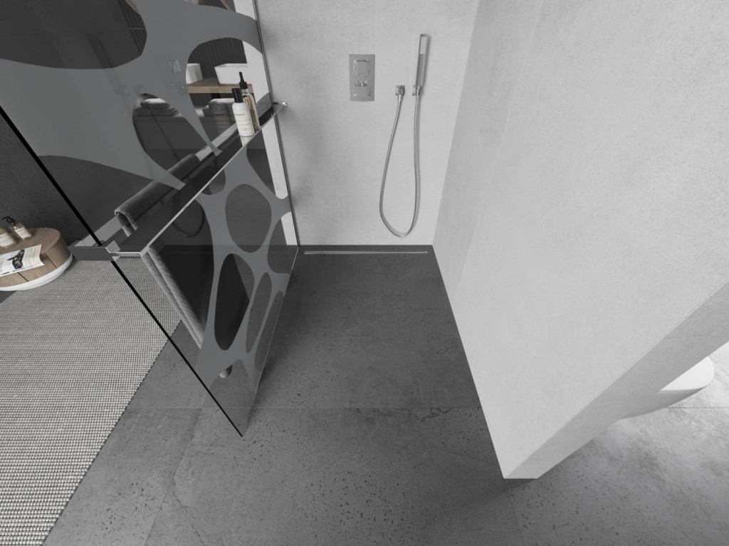 Sprchovú zástenu je možné inštalovať na sprchovú vaničku alebo priamo na podlahu s kombináciou odtokového žľabu. Pokiaľ vyberiete odtokový žľab rovnakej farby, ako máte profil, vzperu a policu, bude sprchová časť vyzerať veľmi elegantne.