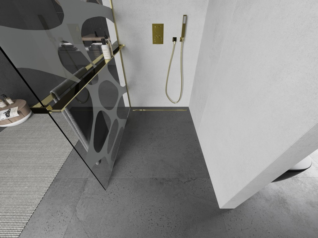 Sprchovú zástenu je možné inštalovať na sprchovú vaničku alebo priamo na podlahu s kombináciou odtokového žľabu. Pokiaľ vyberiete odtokový žľab rovnakej farby ako máte profil, vzperu a policu, bude sprchová časť vyzerať veľmi elegantne.