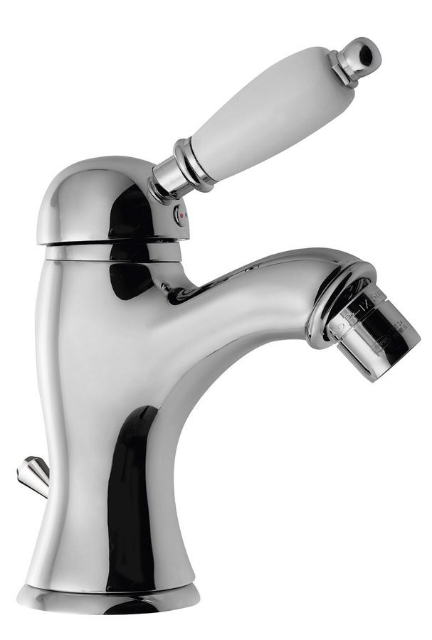 SAPHO - KIRKÉ WHITE stojánkova bidetová batéria s výpusťou, biela páčka, chróm (KI03BC)