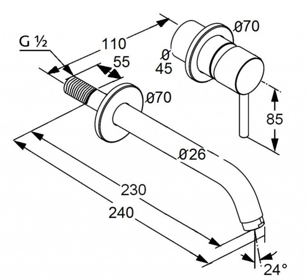 Inštalácia na podomietkové teleso, ktoré je potrebné objednať zvlášť. (Viď. Súvisiace výrobky)