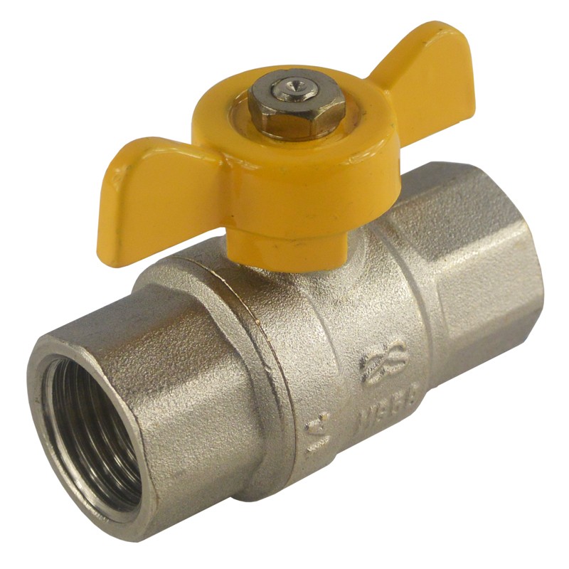Guľový kohút, v prevedení s motýľom je vyrobený z vysoko kvalitnej poniklovanej mosadze s vnútorným závitom podľa európskych štandardov ISO 228 a je určený pre nezakryté domáce a komerčné inštalácie vo vnútri alebo mimo budov. Kohúty je možné použiť len na úplné otvorenie alebo uzavretie prietoku plynu. Kohút je ručne ovládaný, priamy s plným prietokom a vhodný pre rozvody plynu. Tesnenie gule je teflónové.