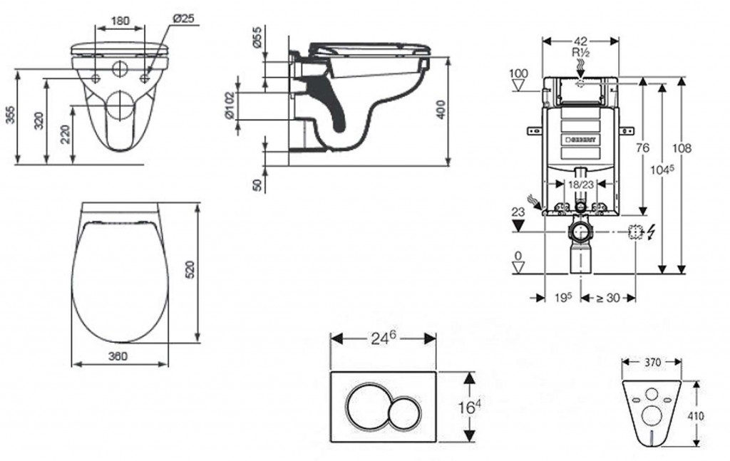 - predstenový inštalačný prvok Geberit Kombifix (110.302.00.5), sa splachovacou nádržkou pod omietku