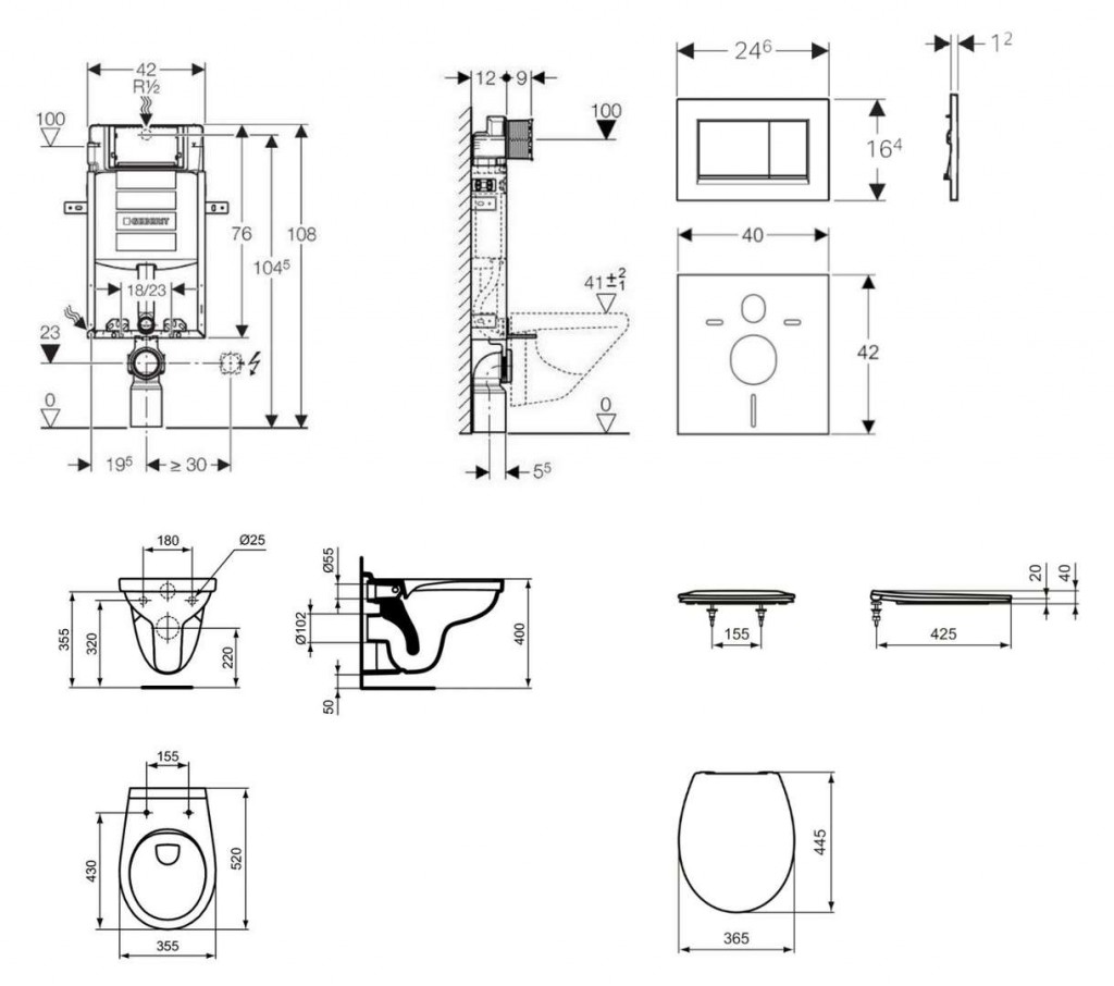- predstenový inštalačný prvok Geberit Kombifix (110.302.00.5), sa splachovacou nádržkou pod omietku