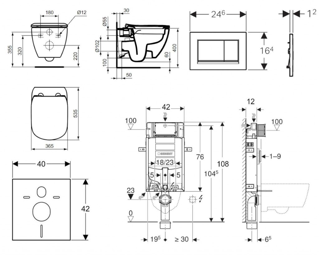 - predstenový inštalačný prvok Geberit Kombifix (110.302.00.5), sa splachovacou nádržkou pod omietku