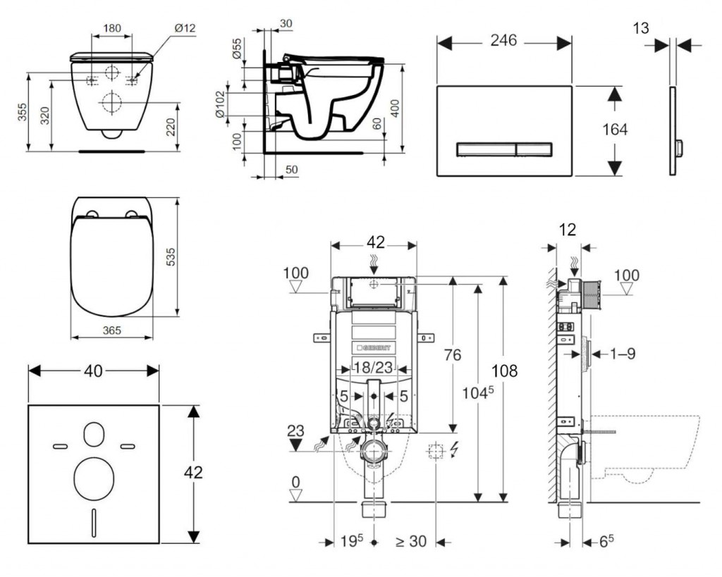 - predstenový inštalačný prvok Geberit Kombifix (110.302.00.5), sa splachovacou nádržkou pod omietku