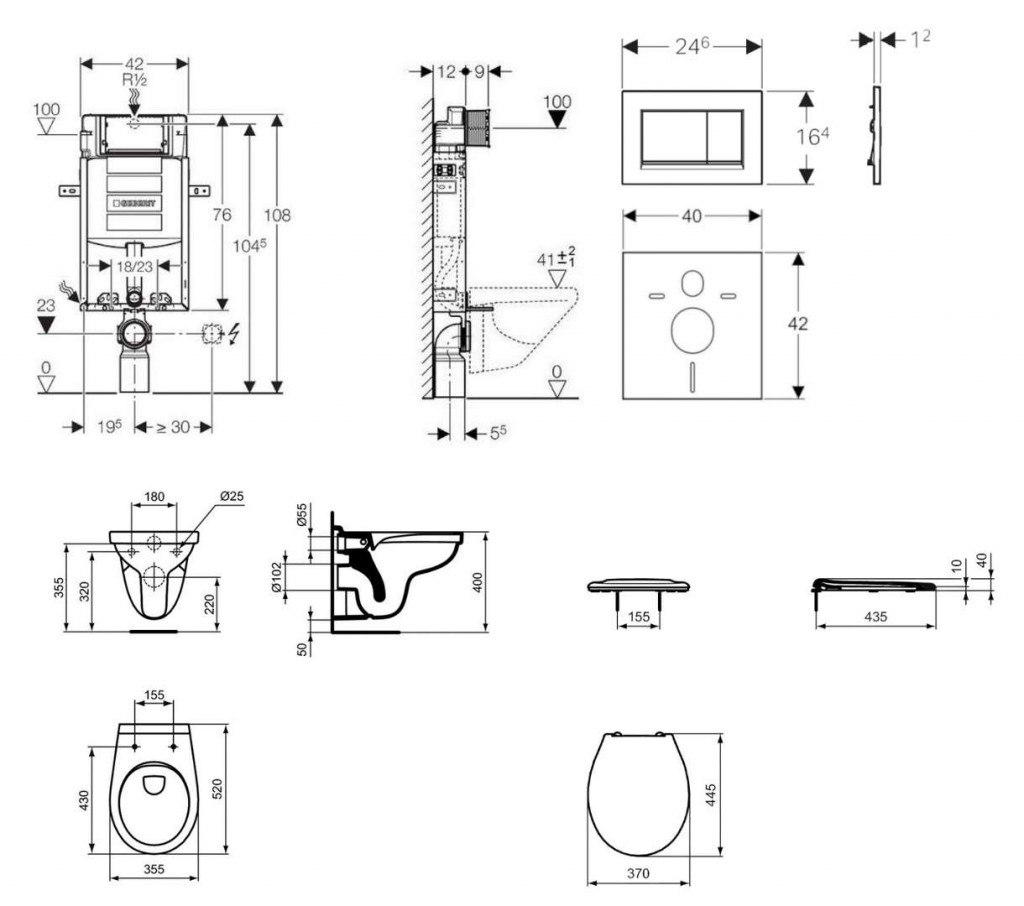 - predstenový inštalačný prvok Geberit Kombifix (110.302.00.5), sa splachovacou nádržkou pod omietku