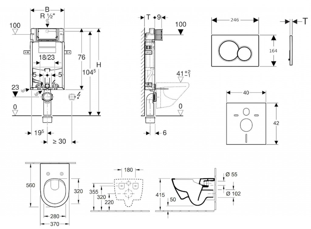 - predstenový inštalačný modul Geberit Kombifix (110.302.00.5), sa splachovacou nádržkou pod omietku Sigma 12 cm