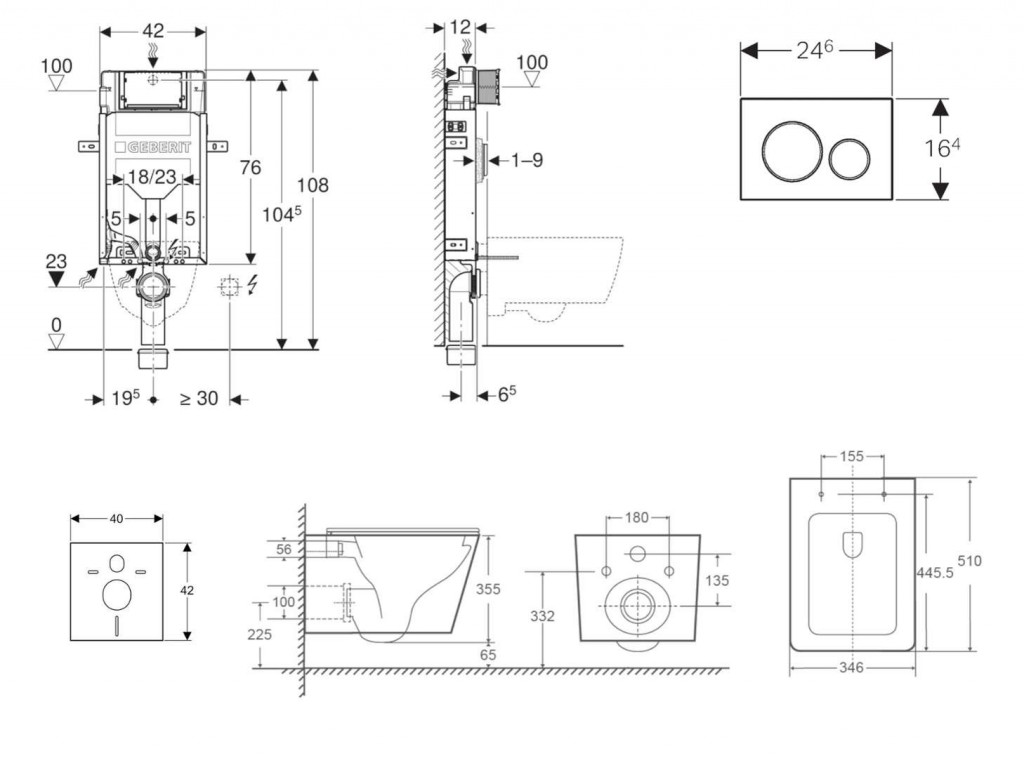 - predstenový inštalačný modul Geberit Kombifix so splachovacou nádržkou pod omietku