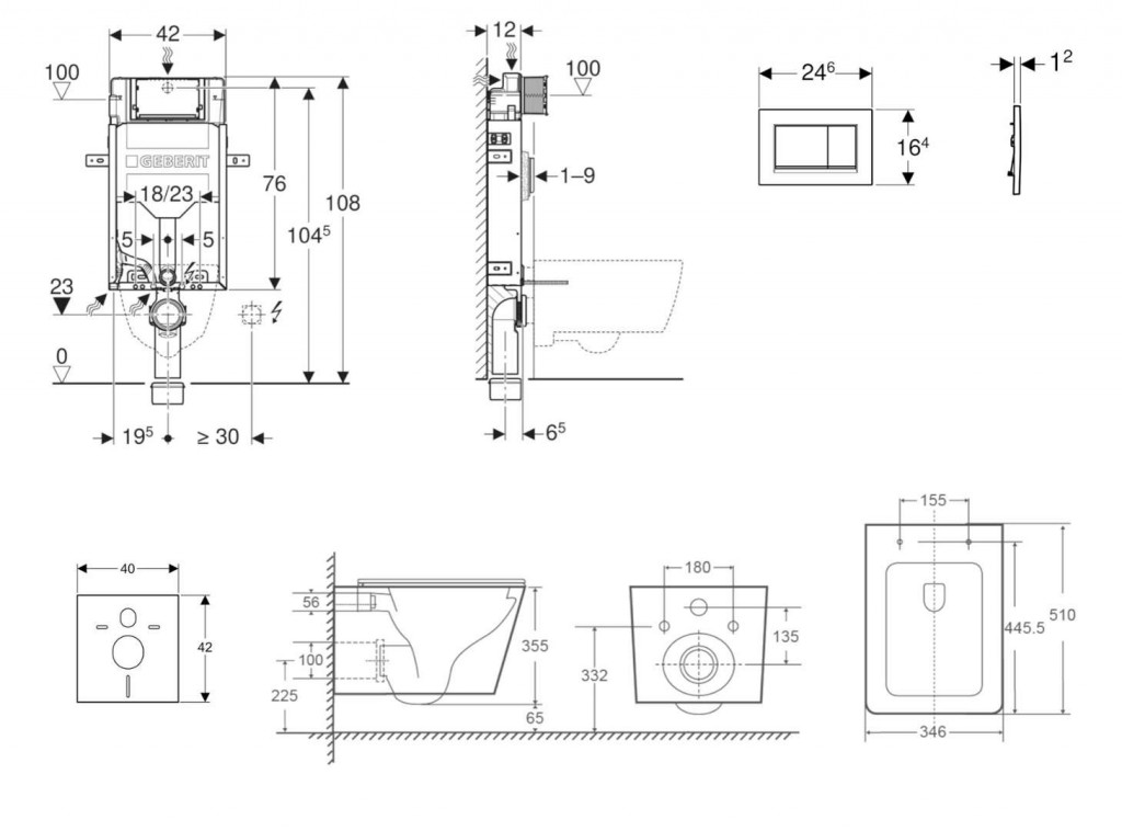 - predstenový inštalačný modul Geberit Kombifix so splachovacou nádržkou pod omietku