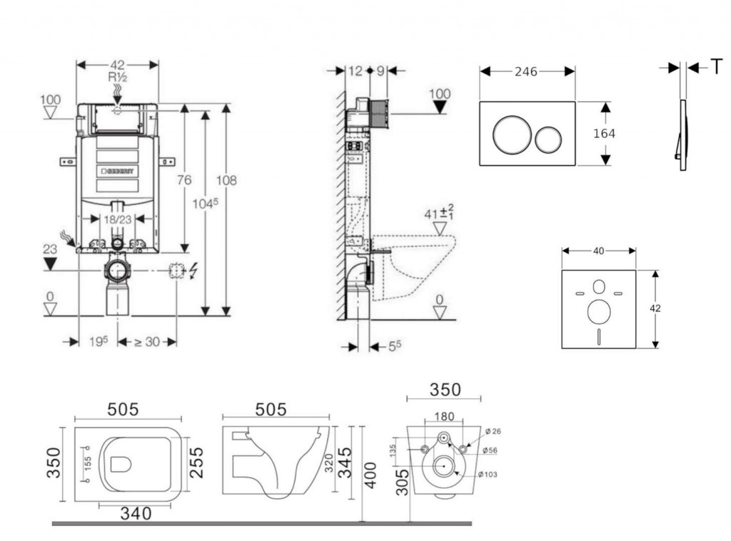 - vybavený rúrkovou chráničkou pre prívodné potrubie na pripojenie sprchovacích WC Geberit AquaClean