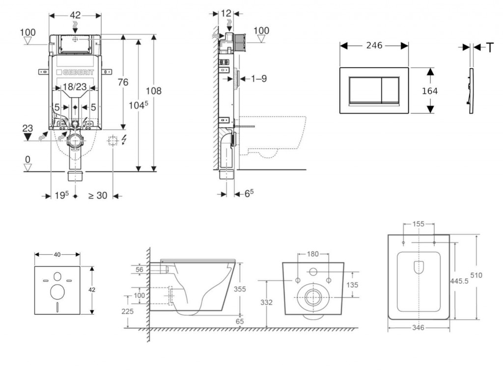 - predstenový inštalačný modul Geberit Kombifix so splachovacou nádržkou pod omietku