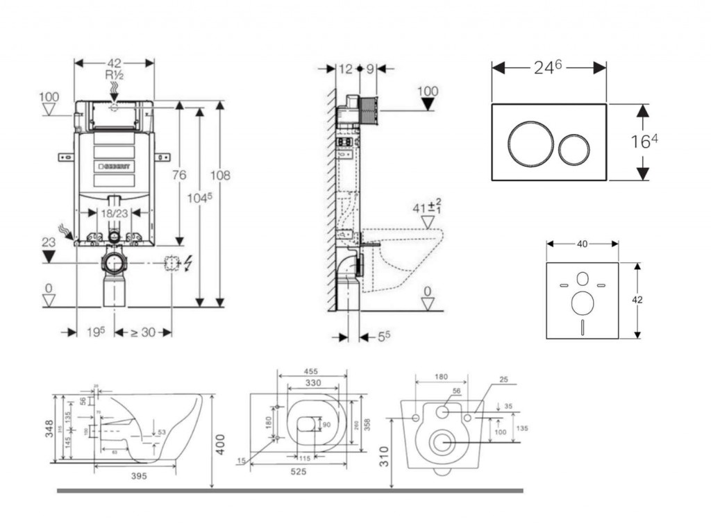 - predstenový inštalačný modul Geberit Kombifix so splachovacou nádržkou pod omietku