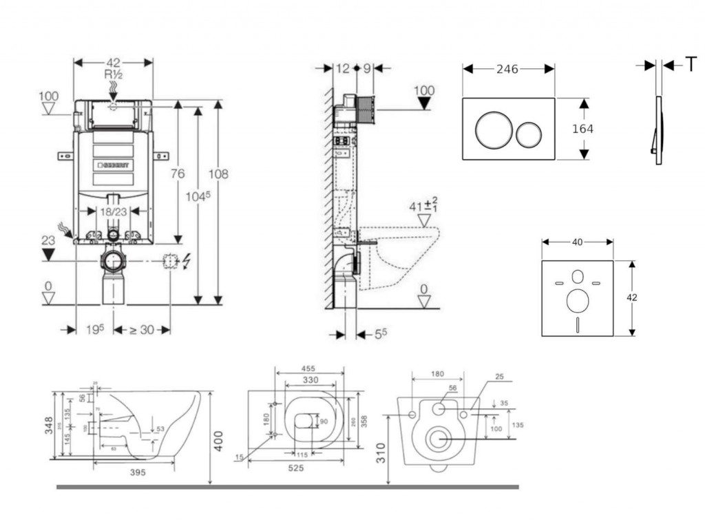 - vybavený rúrkovou chráničkou pre prívodné potrubie na pripojenie sprchovacích WC Geberit AquaClean