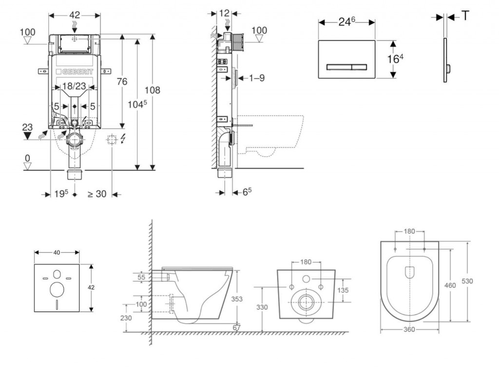 - vybavený rúrkovou chráničkou pre prívodné potrubie na pripojenie sprchovacích WC Geberit AquaClean