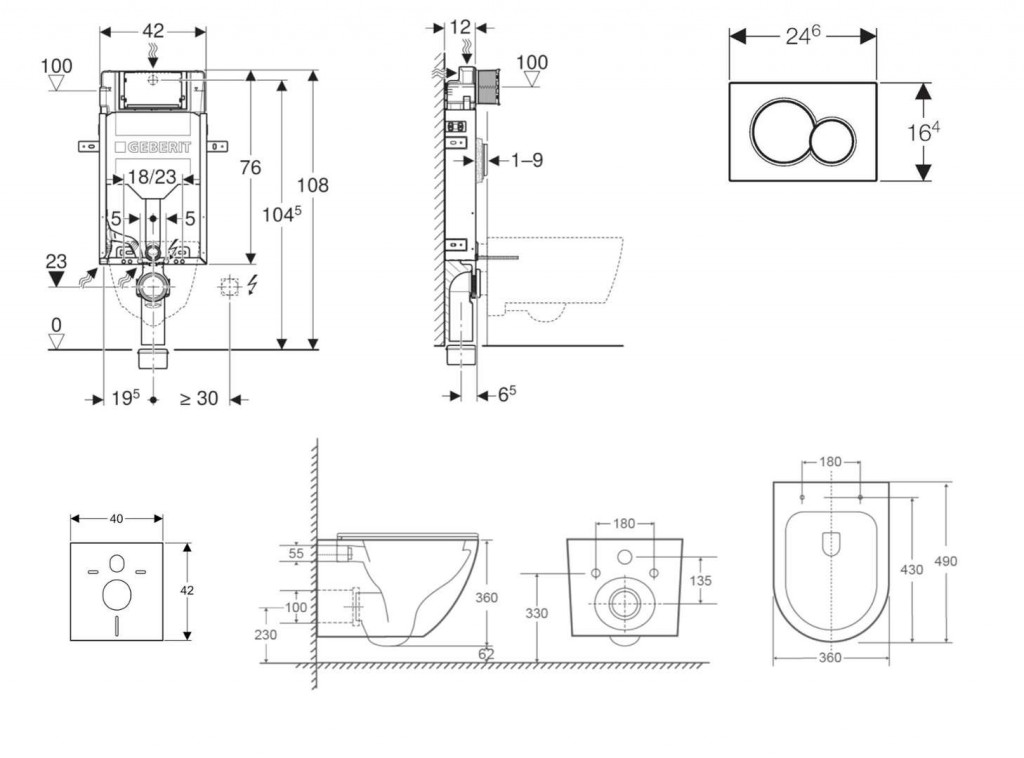 - vybavený rúrkovou chráničkou pre prívodné potrubie na pripojenie sprchovacích WC Geberit AquaClean