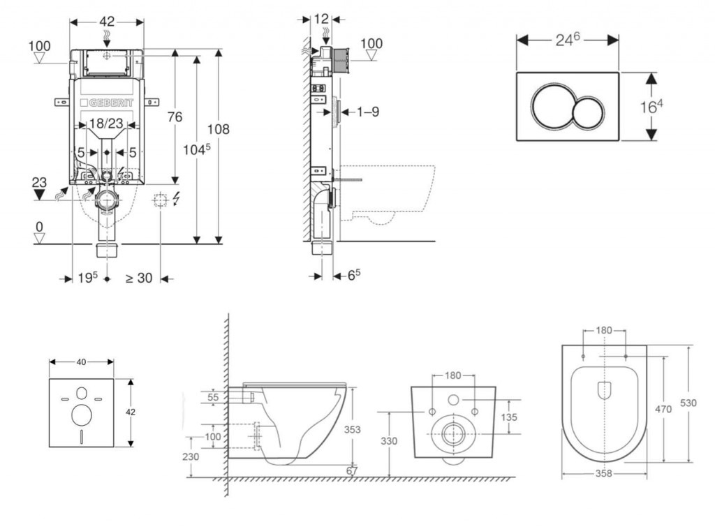 - vybavený rúrkovou chráničkou pre prívodné potrubie na pripojenie sprchovacích WC Geberit AquaClean