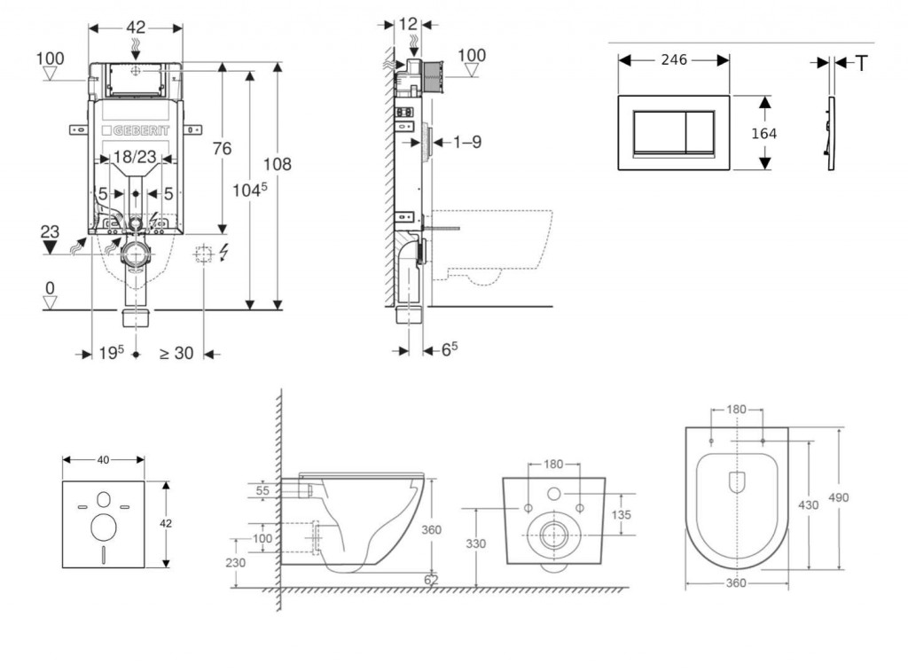 - vybavený rúrkovou chráničkou pre prívodné potrubie na pripojenie sprchovacích WC Geberit AquaClean