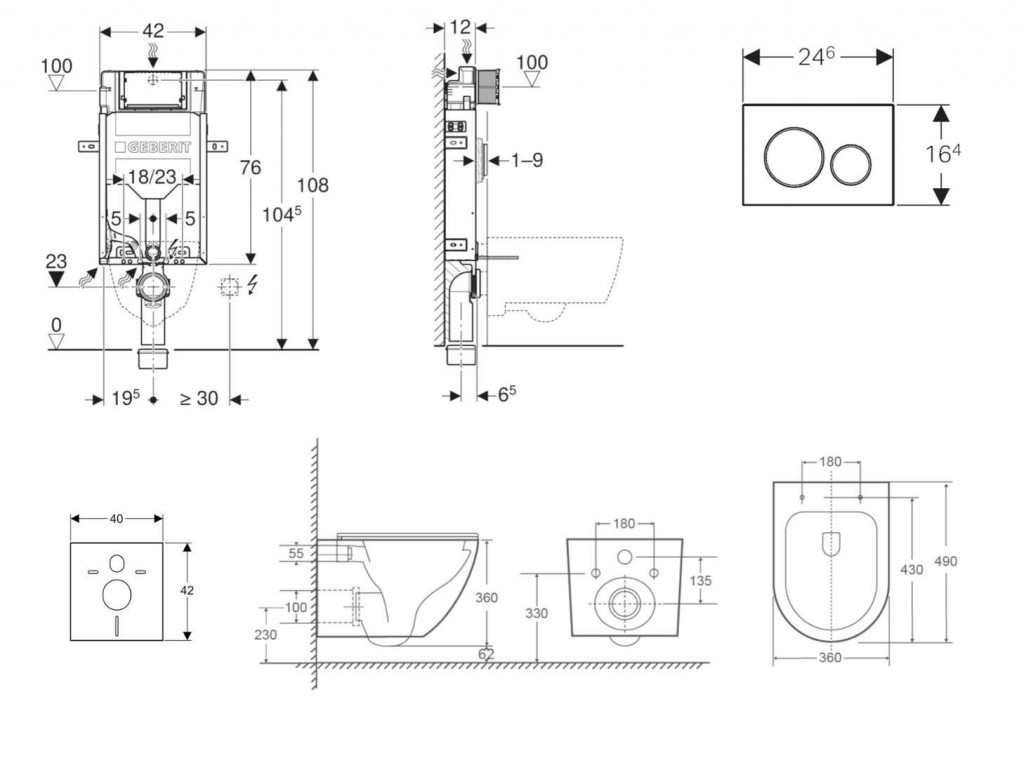 - vybavený rúrkovou chráničkou pre prívodné potrubie na pripojenie sprchovacích WC Geberit AquaClean