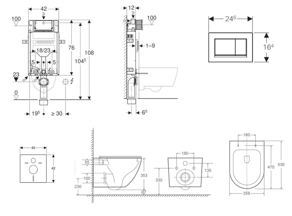 - vybavený rúrkovou chráničkou pre prívodné potrubie na pripojenie sprchovacích WC Geberit AquaClean