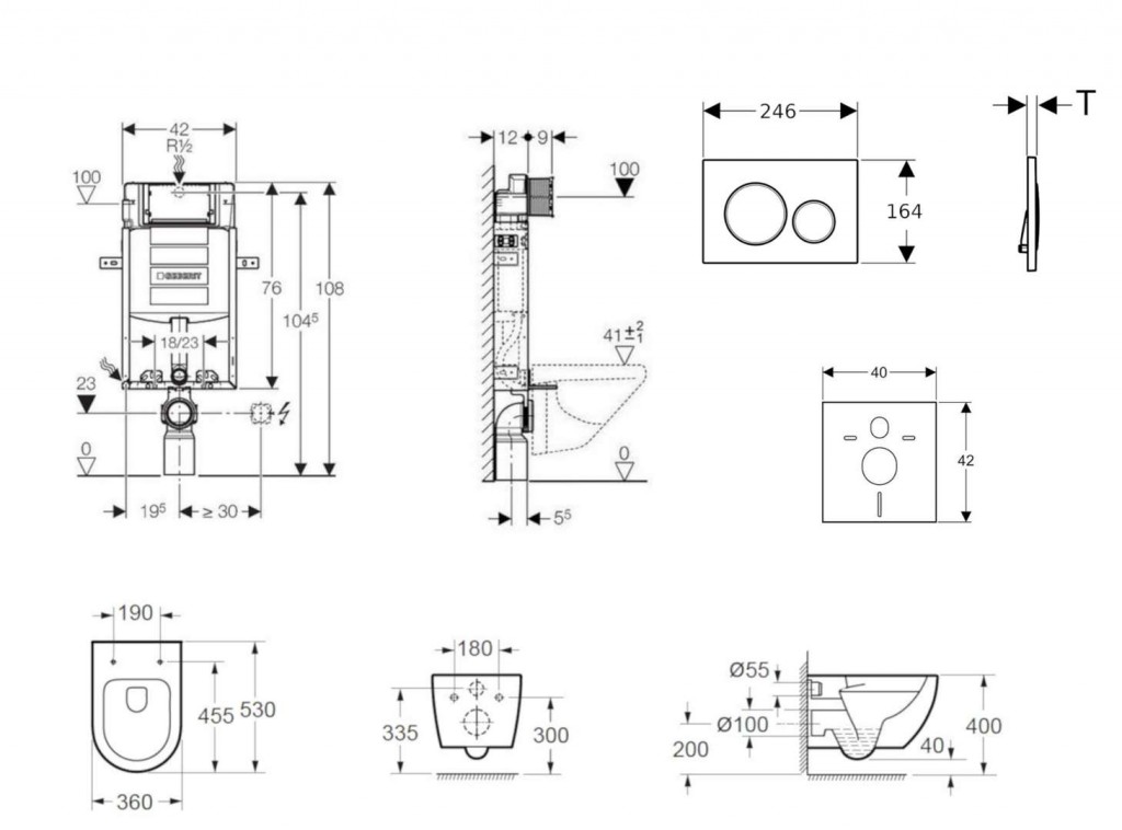 - vybavený rúrkovou chráničkou pre prívodné potrubie na pripojenie sprchovacích WC Geberit AquaClean