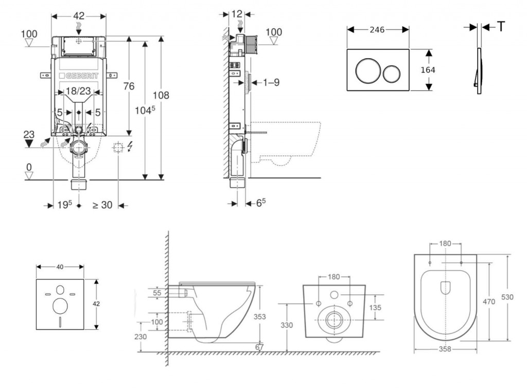 - vybavený rúrkovou chráničkou pre prívodné potrubie na pripojenie sprchovacích WC Geberit AquaClean