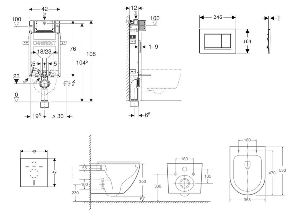 - vybavený rúrkovou chráničkou pre prívodné potrubie na pripojenie sprchovacích WC Geberit AquaClean