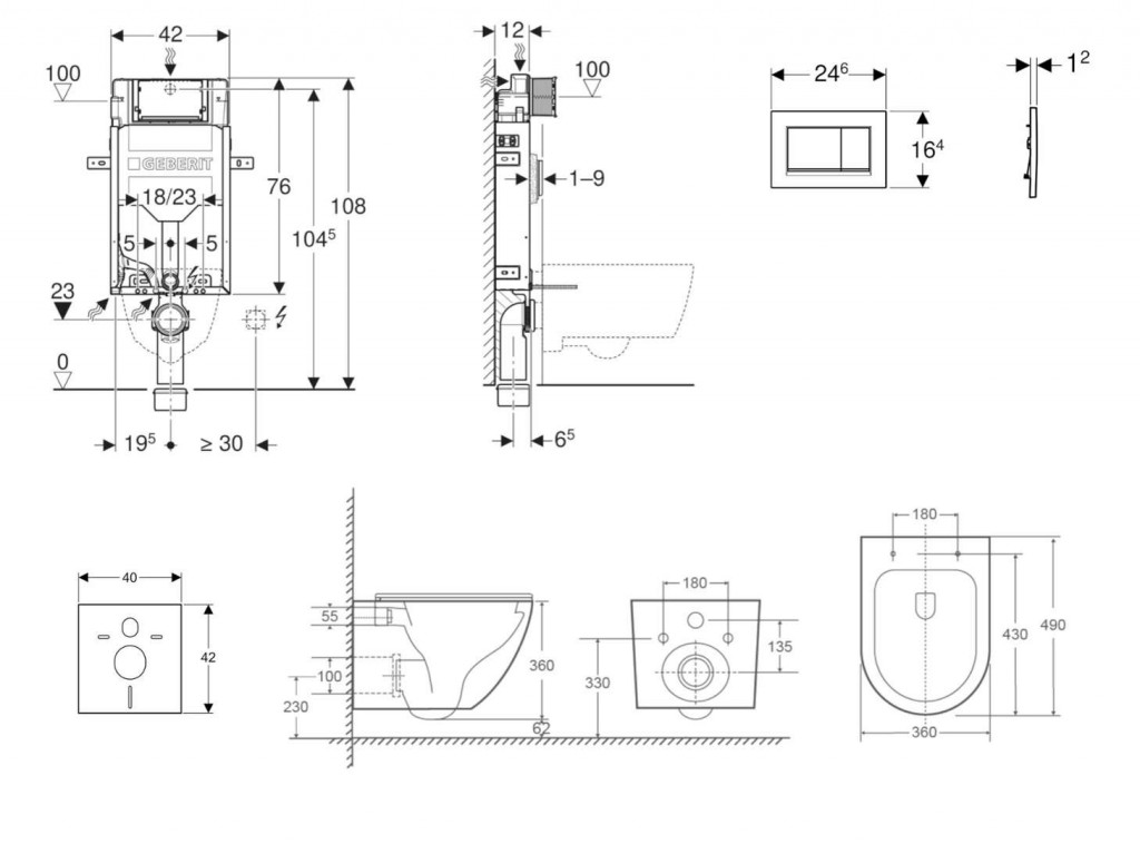 - vybavený rúrkovou chráničkou pre prívodné potrubie na pripojenie sprchovacích WC Geberit AquaClean