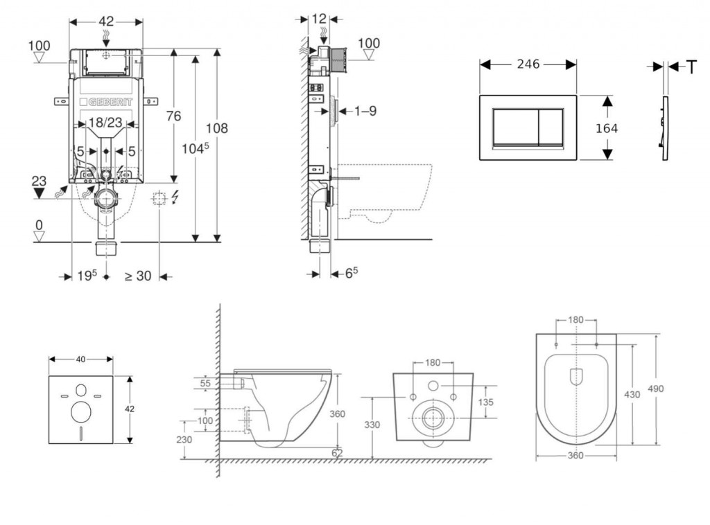 - vybavený rúrkovou chráničkou pre prívodné potrubie na pripojenie sprchovacích WC Geberit AquaClean